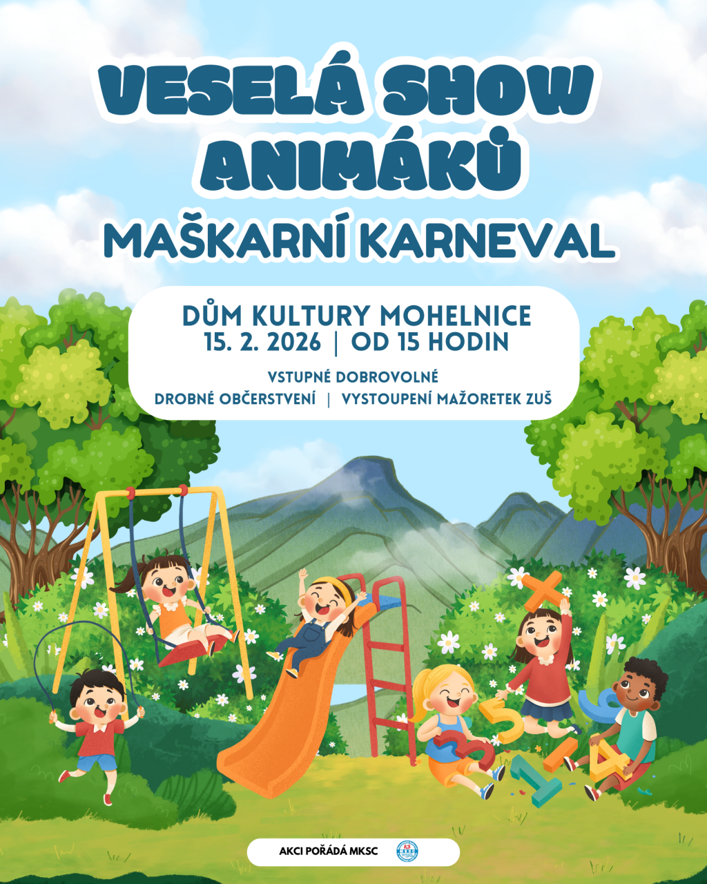 Dům kultury Mohelnice pořádá v neděli 15. února Veselou show Animáků. Maškarní karneval plný her, tance, smíchu a zábavy pro malé i velké začne v 15 hodin. Vstupné je dobrovolné.