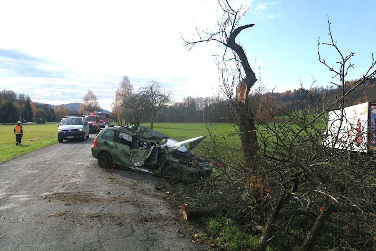 Děsivé následky nehody mezi Loučnou nad Desnou a Velkými Losinami. Roli při ní sehrál alkohol. Foto: pčr