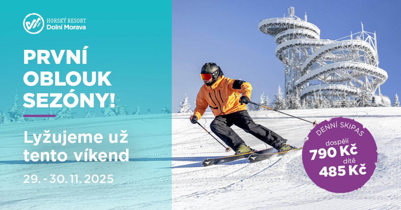 Horský resort Dolní Morava letos otevírá lyžařskou sezónu rekordně brzy. Poprvé v novodobé historii spustí provoz už v listopadu. Lyžaři se mohou těšit na 2,2 km upravených sjezdových tratí, výborné sněhové podmínky a stejné ceny skipasů jako v loňském roce.